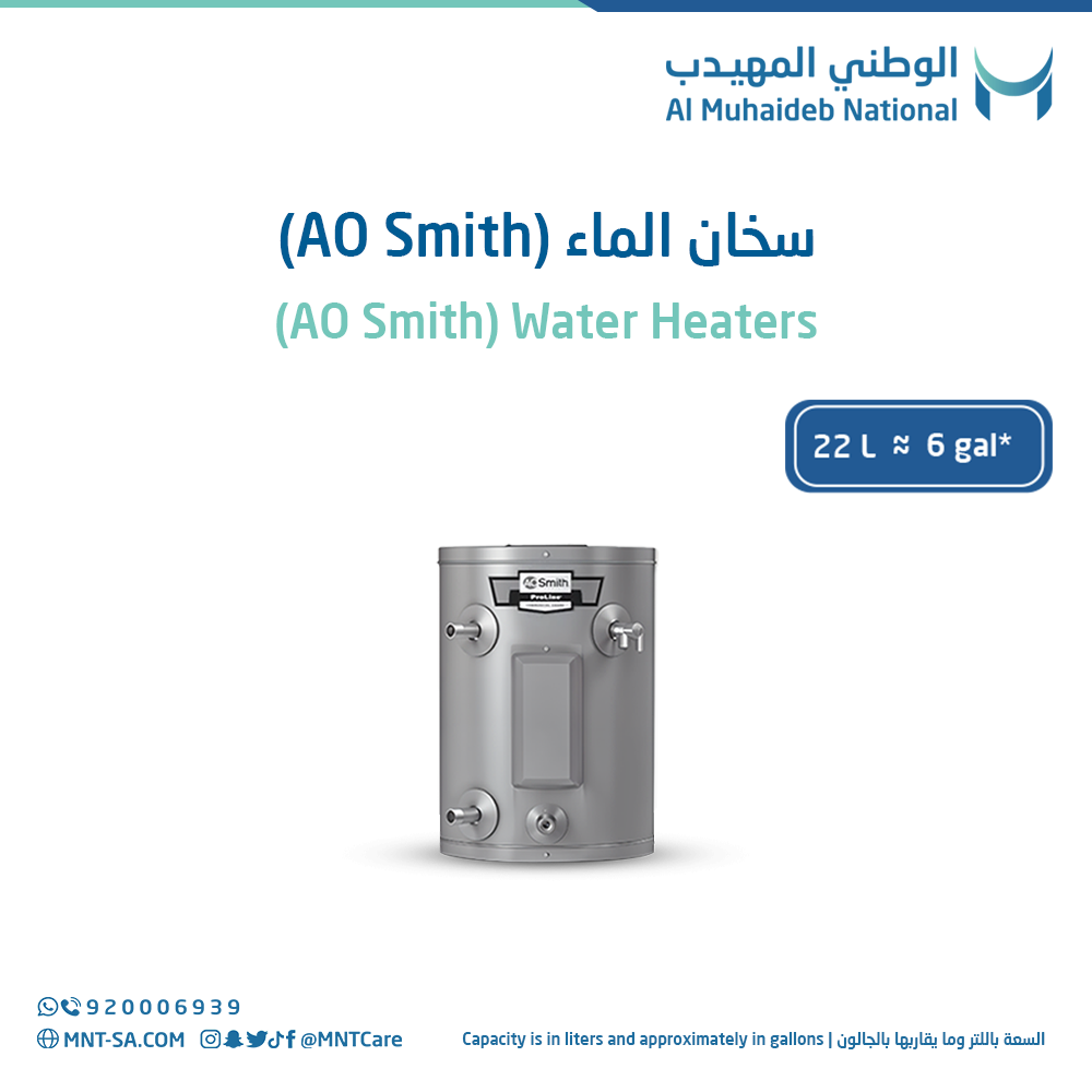 With these features, the A. O. Smith ProLine Central 6-gallon water heater is an excellent choice for your hot water needs in a compact format. Al-Muhaidib National Store ensures a reliable shopping experience with high-quality water heaters and a factory warranty.