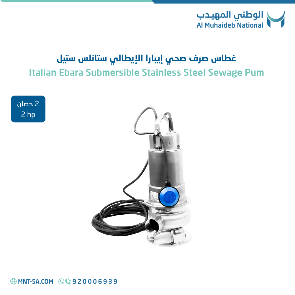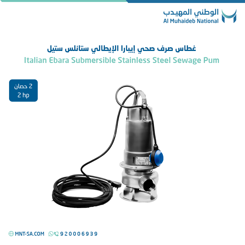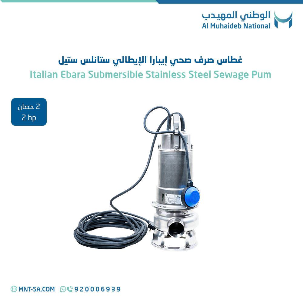 Get the Ebara Italian Stainless Steel Sewage Pump 2 HP now from AL Muhaideb National at the best price, with guaranteed quality and reliable performance!