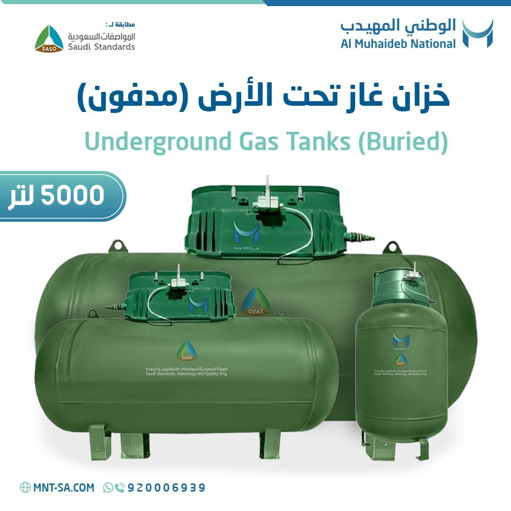 Are you looking for a safe and reliable way to store liquefied petroleum gas? The Buried 5000 liter tank is the efficient and modern solution that meets your needs. It stands out with its unique design and advanced specifications, making it the optimal choice for users who prioritize safety and efficiency. Liquefied petroleum gas tanks are designed with unique specifications to store and supply gas for various commercial, industrial, and residential sectors. They ensure superior and sustainable performance. They are manufactured using high-quality materials and modern techniques, ensuring their durability in changing weather conditions and resistance to corrosion and rust. They are securely installed underground, providing additional space in the surrounding areas and enhancing the aesthetics of the location. At Al-Muhaidib National, we strive to provide everything that is ideal for you, meeting the European standards approved in the Kingdom of Saudi Arabia. With the buried gas tank, you can easily and safely make the most of liquefied petroleum gas. Enjoy the convenience and stability of gas supply without the need for frequent interventions and take advantage of the safety and efficiency provided by this innovative option.
